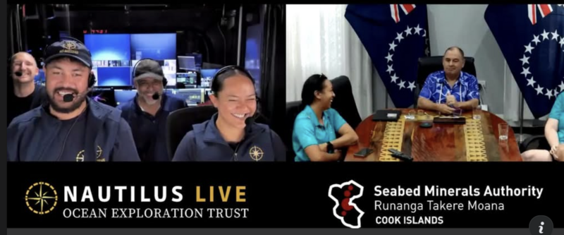 Connecting in real time from Rarotonga, Brown spoke with Dr John Parianos and Tanga Morris Jr of the Seabed Minerals Authority (SBMA) Knowledge Management Division, Michael Parrish of the Ministry of Marine Resources, and Dr Antony Vavia.