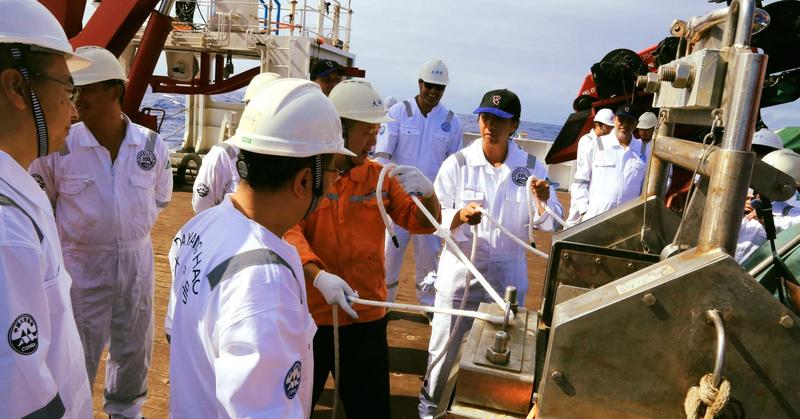 From “safety drills and knot tying, to learning about the Da Yang Hao’s full spread of scientific equipment,” the Cook Islands team has been fully immersed in ship life. They have received a warm welcome and been integrated into the “Science Team to participate in the collection of marine scientific data during the research cruise.”