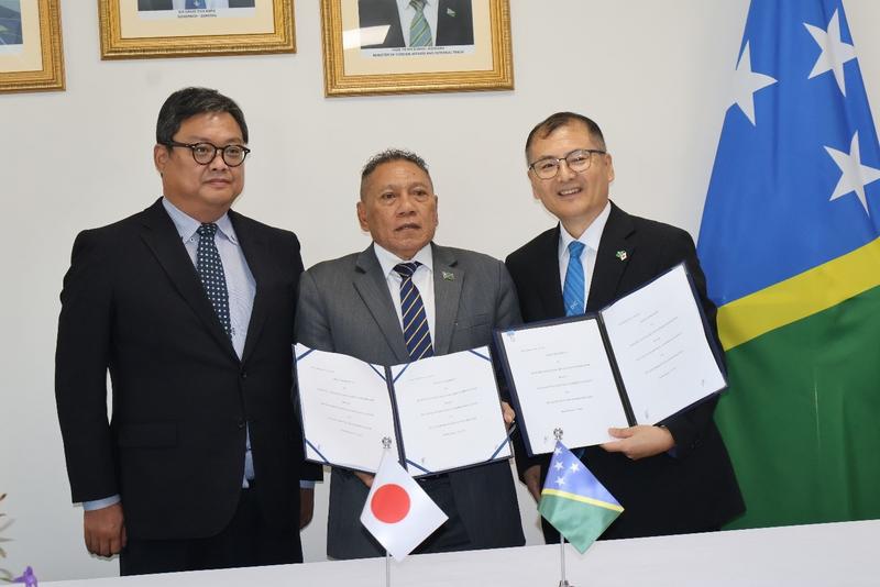 Minister for Foreign Affairs and External Trade Peter Shanel Agovaka signed the agreements with the chargé d’affaires of the Embassy of Japan, Maruo Katsumasa, and the resident representative of the Japan International Cooperation Agency (JICA) Solomon Islands Office, Kawasaki Mitsuyoshi.